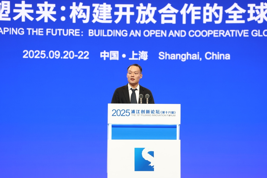 戴国浩在2025浦江创新论坛主论坛上演讲。